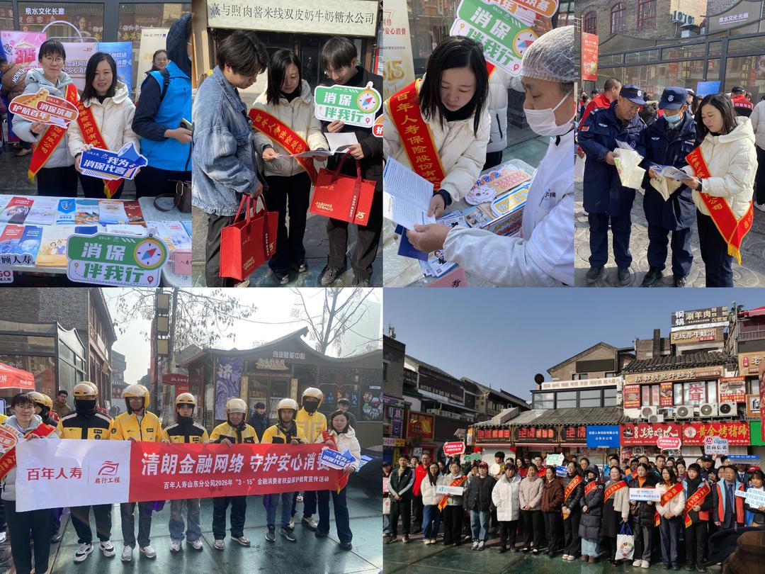 三月春风暖,消保正当时。2026年“3·15”金融消费者权益保护教育宣传周期间,百年人寿山东分公司深入贯彻落实山东金融监管局工作要求,紧扣“清朗金融网络 守护安心消费”主题,坚持金融工作的政治性、人民性,组织全辖分支机构开展了一系列形式多样、内容丰富的教育宣传活动,将金融知识送到群众身边,以实际行动践行“为民办实事”的服务承诺。