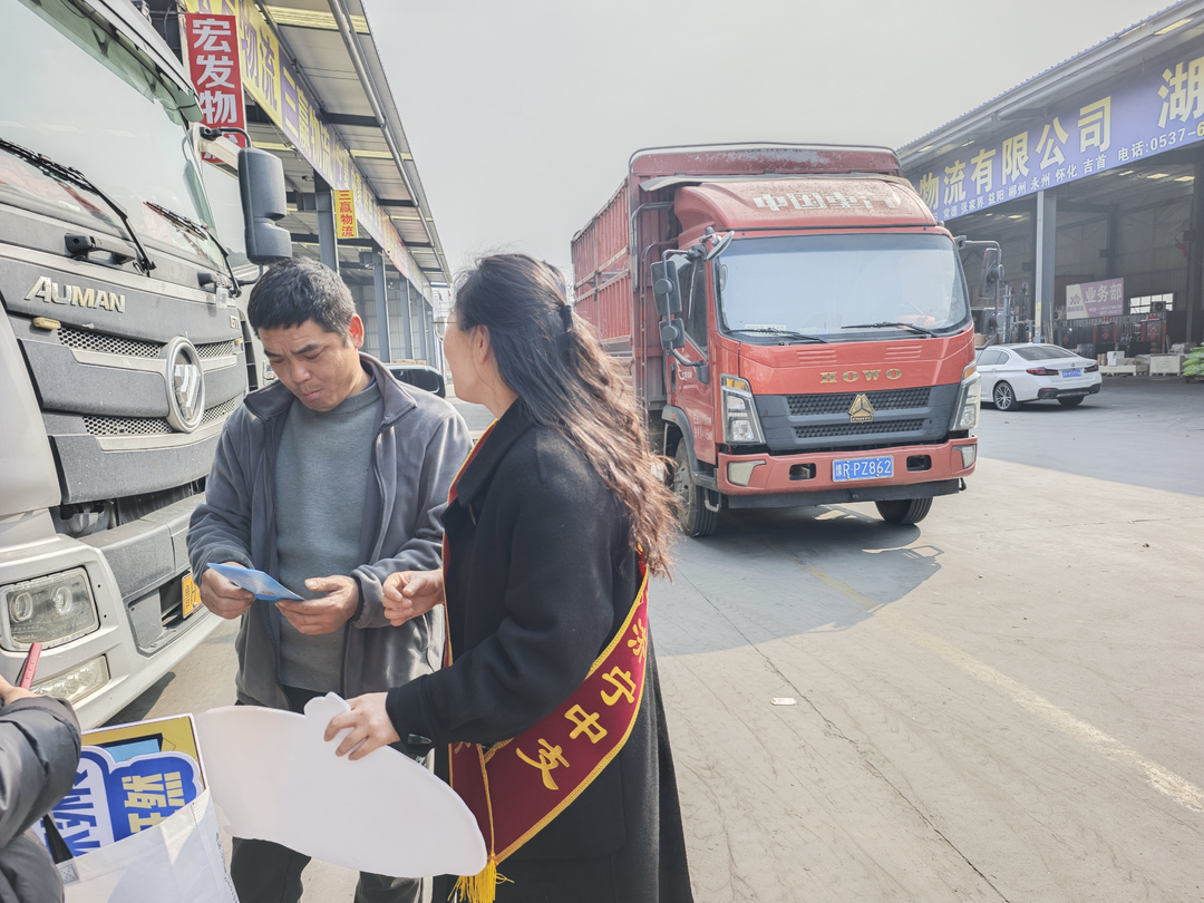 物流园里车流不息,不仅是城市物资流转的动脉,也是许多长途货车司机奔波劳作的“主场”。为切实提升新市民群体的金融素养,有效防范化解金融风险,3月12日,百年人寿济宁中支组织金融宣传志愿服务队,走进永丰物流园,开展了一场以“晴朗金融网络 守护安心消费”为主题的金融宣传教育活动,为奔波在路上的“奔跑者”送上了一份特殊的“平安锦囊”。