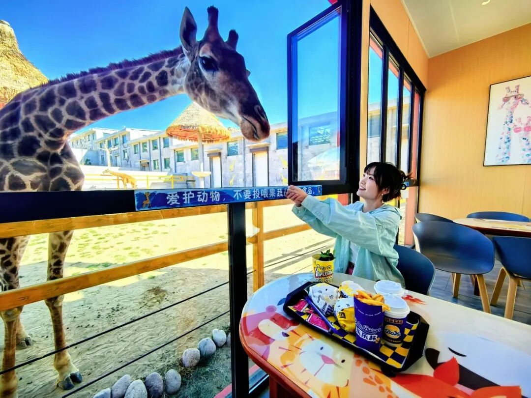 动物园内的非洲区还有长颈鹿、斑马、犀牛等动物。在这里的长颈鹿生活馆,天气回暖之后,还能与“长腿欧巴”共进午餐。隔着一扇窗户近距离与长颈鹿互动,共享悠闲时光。二楼还有3D长颈鹿主题壁画,适合打卡拍照。