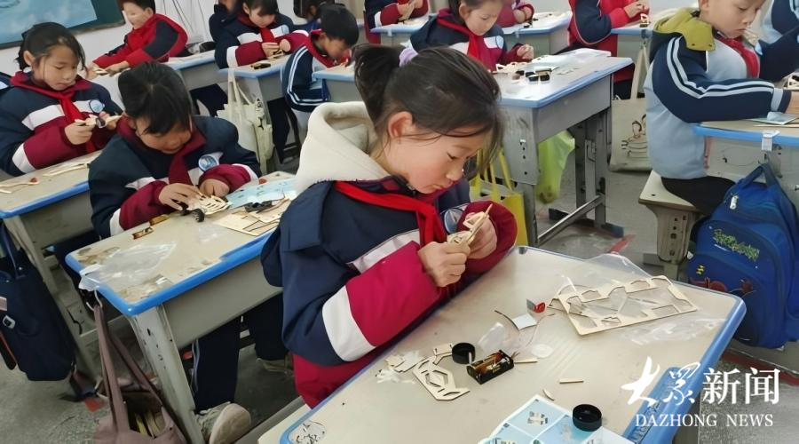 服务队走进成武县党集中心小学,指导孩子们做手工小车。(李雨泽 摄)