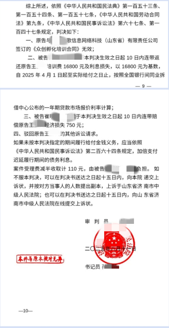 法院判决培训合同无效