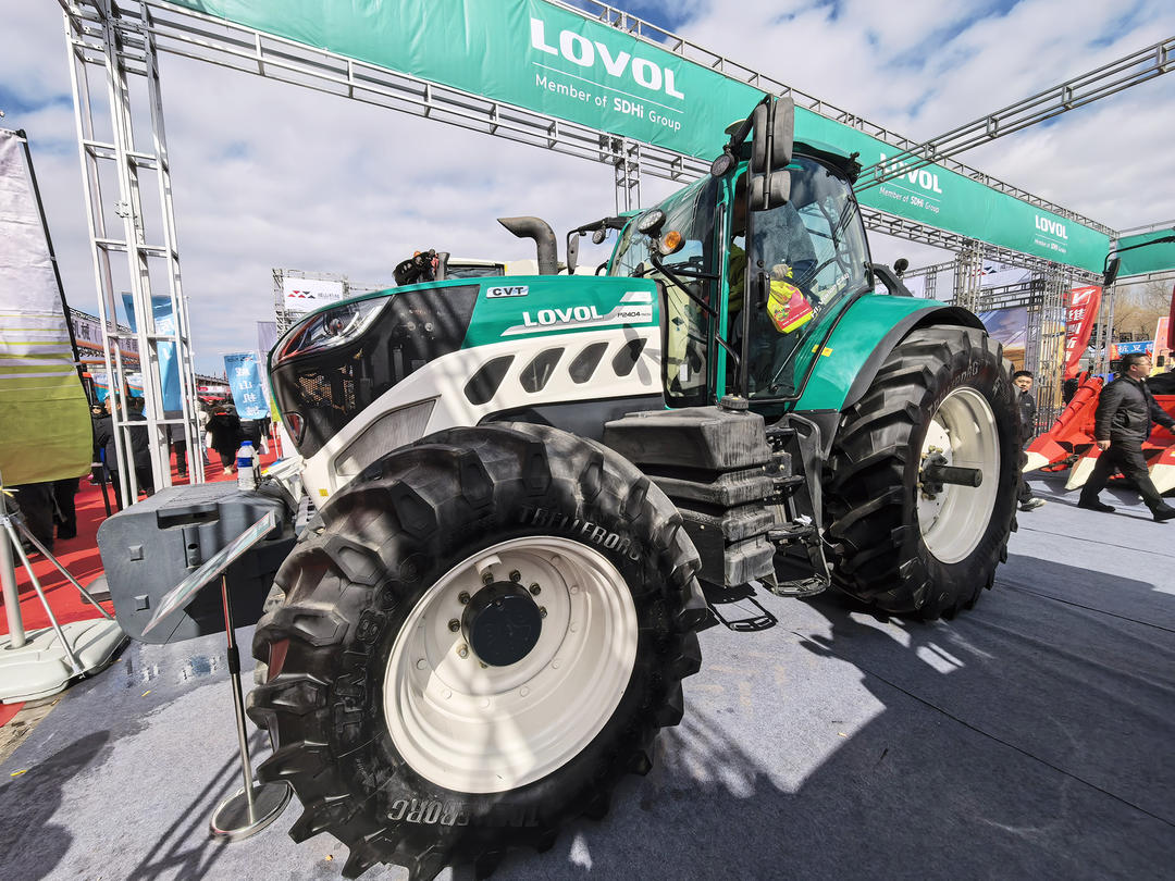 在拖拉机展区,雷沃智能拖拉机依次列阵,从动力澎湃的M系列拖拉机到代表无级变速前沿科技的CVT系列旗舰机型,全面满足黑土地规模化、集约化的作业需求。