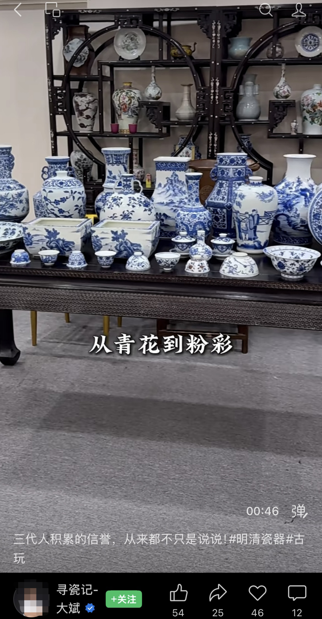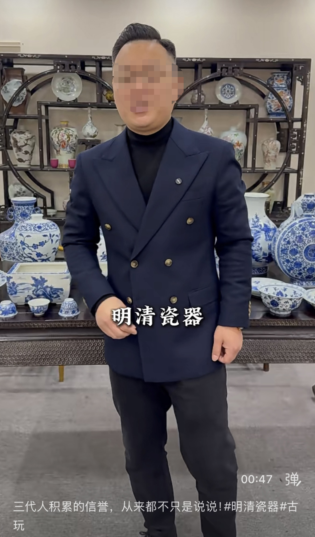 “2025年12月份,我通过网络了解古瓷时刷到了‘大斌严选瓷藏’的电商公众号。”韩先生告诉半岛全媒体记者,公众号中的数十个视频显示,主播大斌经常到偏远村落农民家中收购一些古瓷,而大斌视频中宣称的“信誉二字,是我大斌和家族三代人在这个行业里立足的根本”、“2004年拜师南京艺术学院文保系”云云,让他觉得“大斌是靠谱的,不管收古瓷还是售古瓷”。