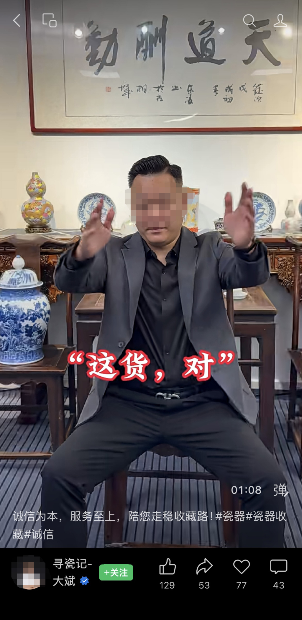 之后的数天里,韩先生仍关注着大斌电商公众号上的视频以及售瓷直播。