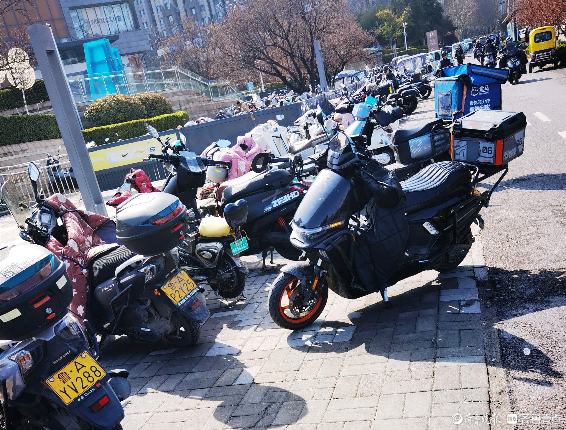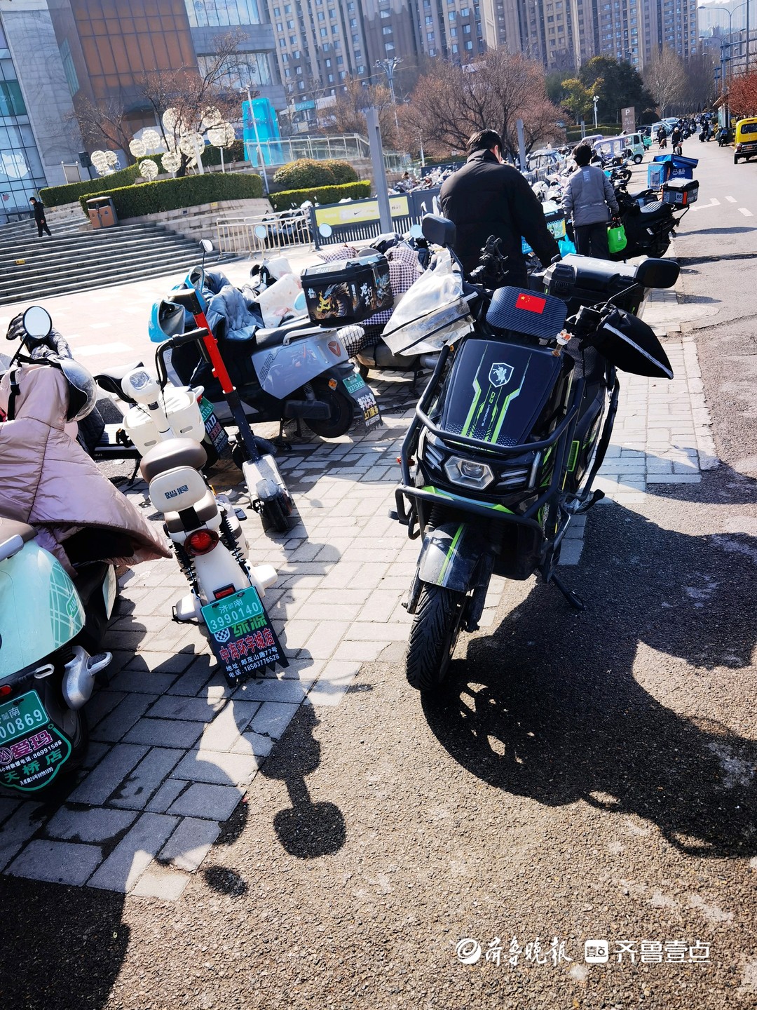 3月15日,情报员“cy3369”向齐鲁晚报官方客户端齐鲁壹点情报站发来一则情报,在济南市市中区九曲庄路北口中海环宇城前人行道及盲道上,非机动车乱停乱放特别严重,阻碍行人正常通行,市民盼清理整治。