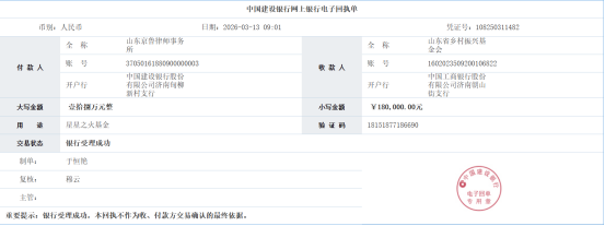近日,山东京鲁律师事务所设立的“星星之火”公益基金“蓄水池”再注入25万元,至此,“星星之火”基金累计已达到190万元。