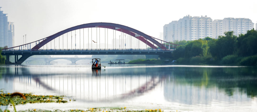 雨后的桥,是聊城最灵动的诗行。双拱桥的石拱在水面映出完整的圆,雨雾朦胧里,桥身的纹路被水汽浸得柔软,游船掠过湖面,惊起一圈圈涟漪。