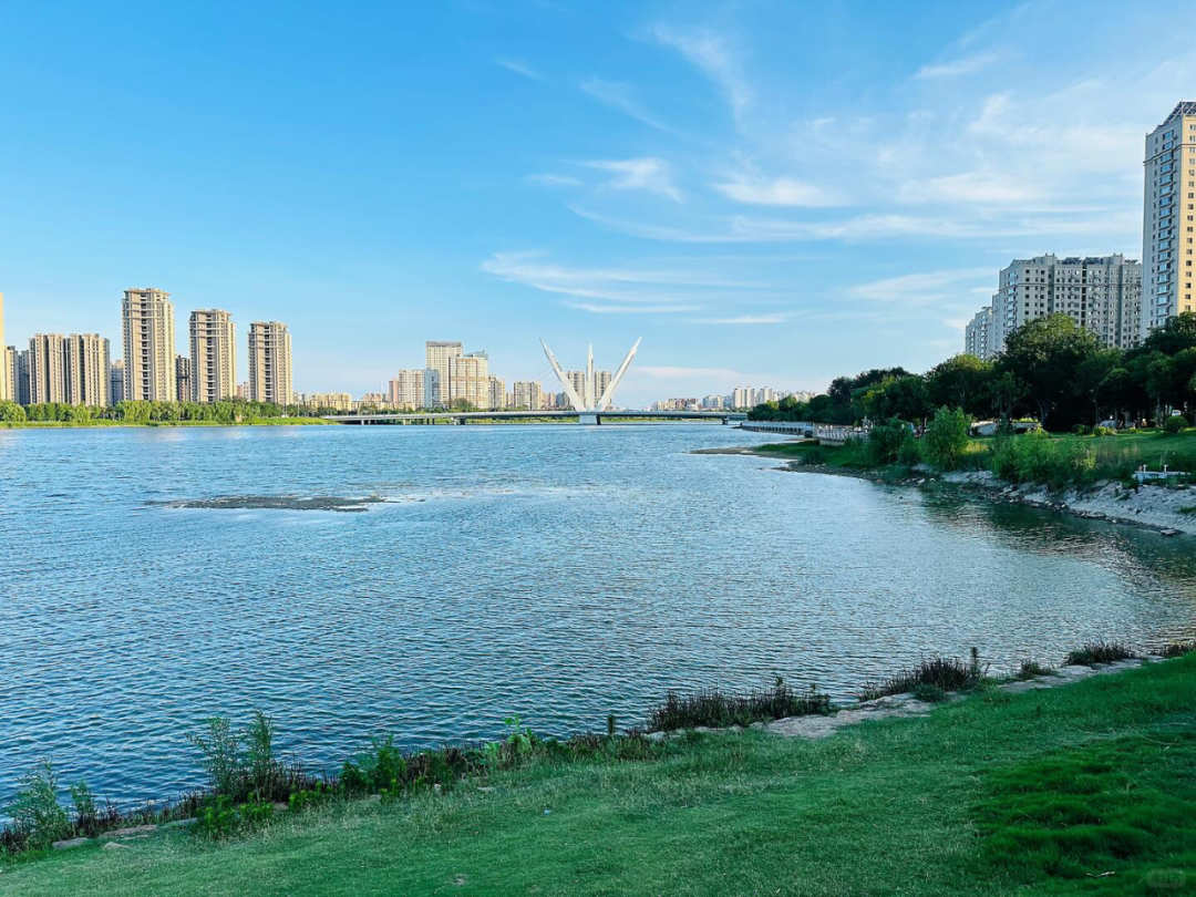 沿着徒骇河畔步道慢行,远处的城市高楼在薄雾里若隐若现,近处的垂柳拂过水面,惊起几只水鸟。空气里满是湿润的凉意。