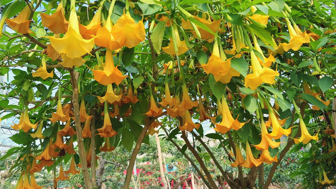 曼陀罗花同样从1月开到5月,其独特的花形与香气,为园区增添了一抹异域风情。