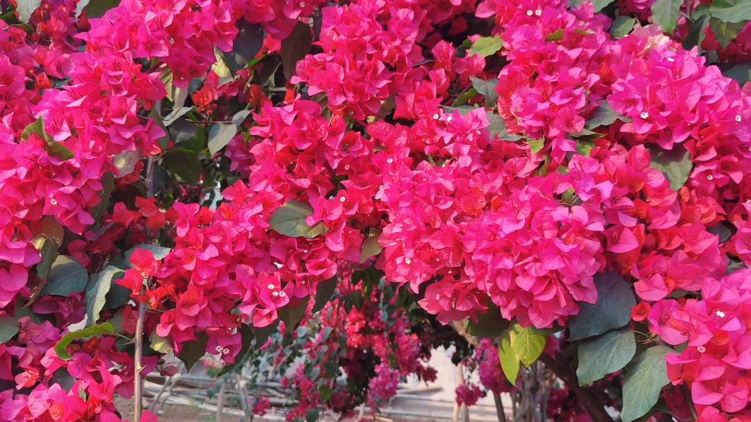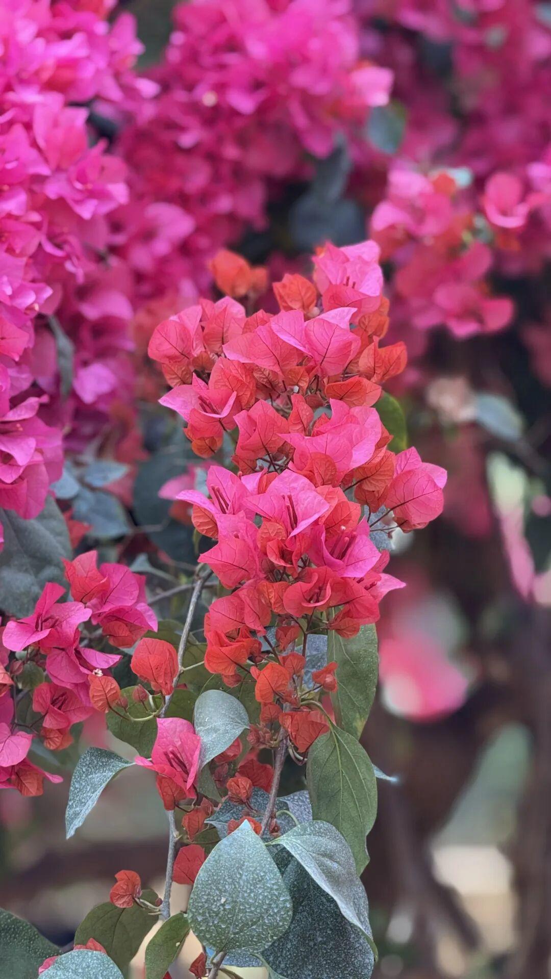 热情似火的三角梅,花期从1月一直持续到5月,贯穿整个春季,是园内最持久的风景线。