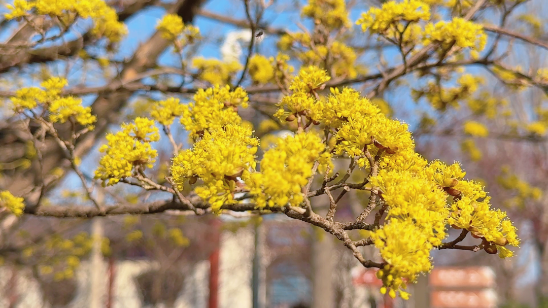 2月至4月,是山茱萸花开的时节,点点金黄或红艳,率先报告春的消息。