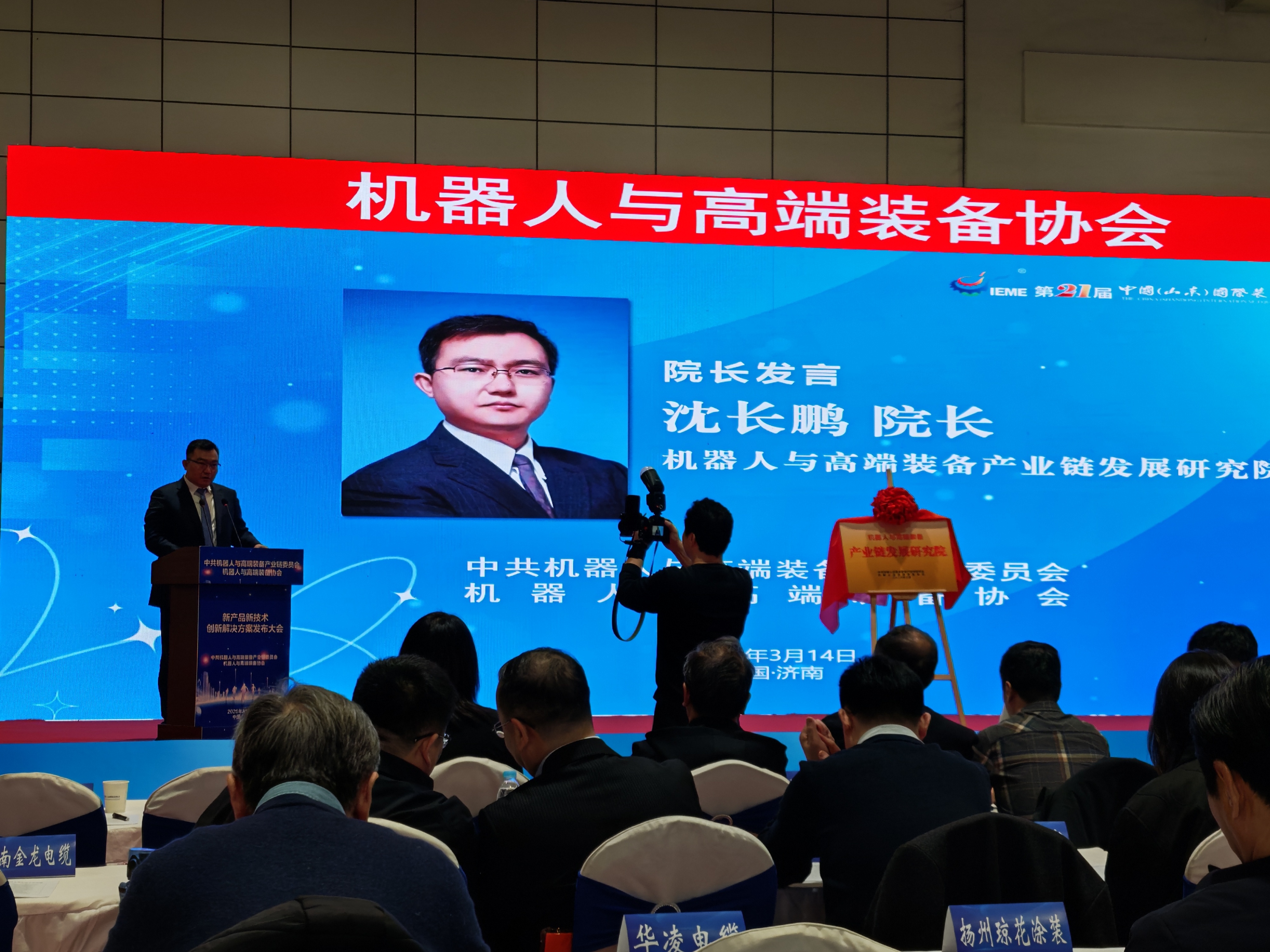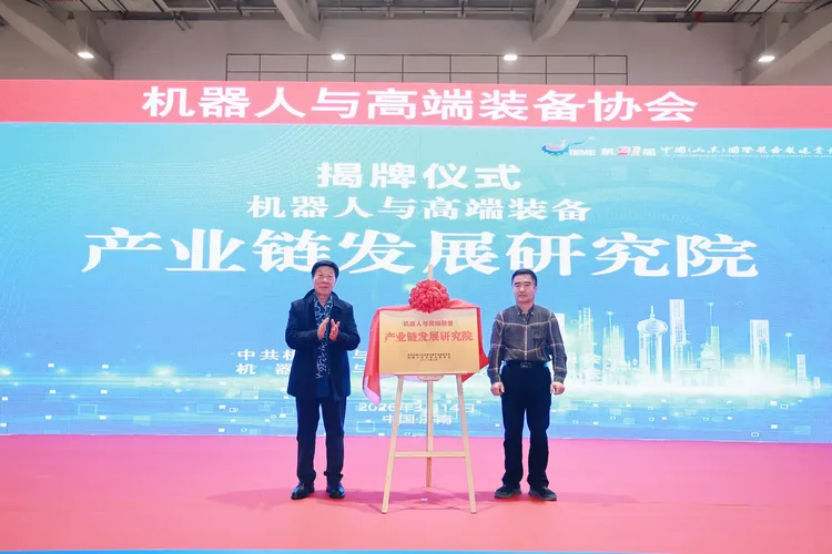 3月14日,在济南开幕的第21届中国(山东)国际装备制造业博览会(简称“山东装备博览会”)上,京沪黄金线智能装备高端峰会期间,机器人与高端装备产业链发展研究院揭牌成立。