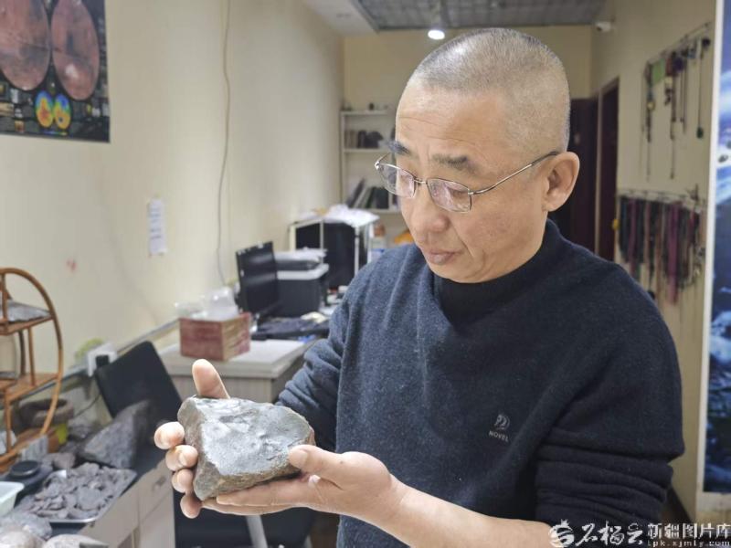 吴春林展示收藏的石陨石。石榴云/新疆日报 记者宋海波摄