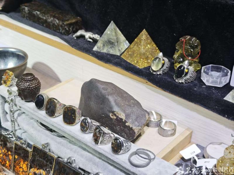 吴春林店内销售的各类陨石周边产品。石榴云/新疆日报 记者宋海波摄