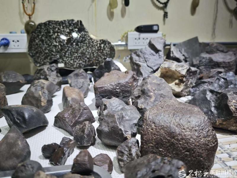 3月14日14时,乌鲁木齐市华凌国际珠宝玉器城陨石天宝小店内,手机镜头对准桌上一堆黑亮石块,“@陨石说”直播间准时开播。“大家仔细看,这层完整的黑色熔壳、表面自然形成的气印,才是真陨石的典型特征。”账号主人吴春林手持一块拳头大的石陨石,语气沉稳笃定,镜头弹幕飞速滚动,“这块是真品吗?”“多少钱一克?”“老师帮我看看这块是不是陨石。”……网友的提问此起彼伏。