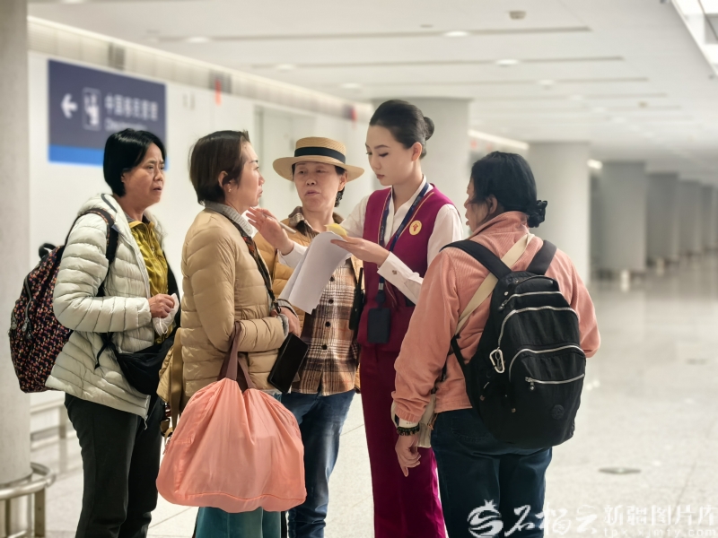 春运期间,南航工作人员在乌鲁木齐天山国际机场为旅客办理中转手续。李瑾摄