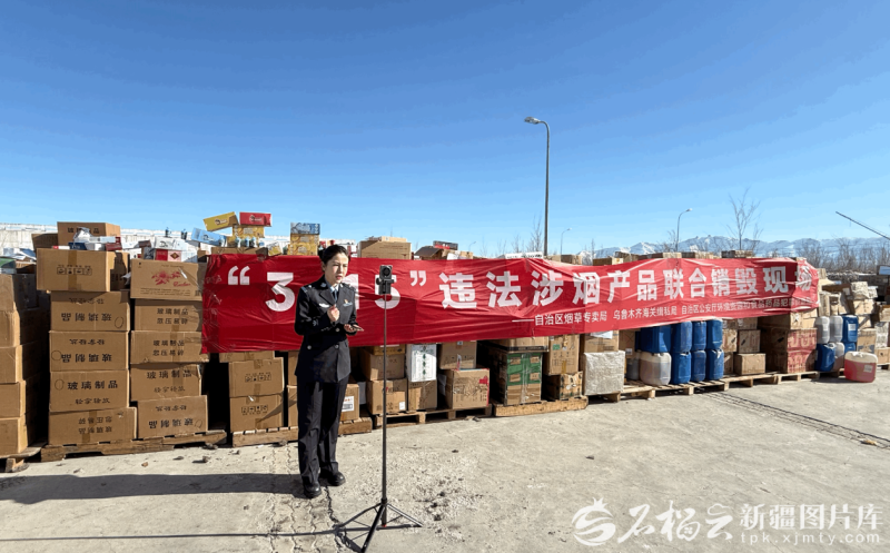 3月13日,一场违法涉烟产品集中销毁直播活动在乌鲁木齐市举行。石榴云/新疆日报记者 司路路摄
