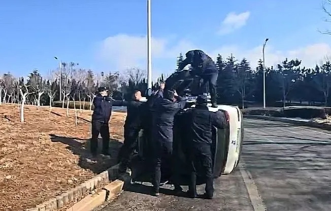 救助侧翻车辆人员 锁定肇事逃逸车辆 泰安执法人员暖民心