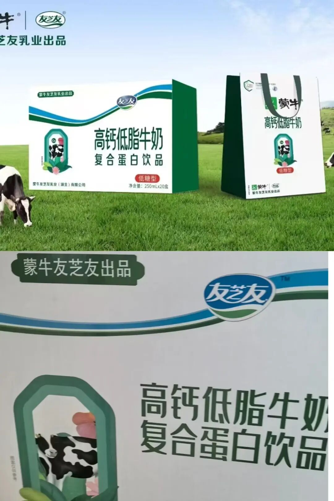 “看包装是蒙牛,压根没多想。”河南商水县的王大力(化名)告诉中新网《民生调查局》记者,春节期间他在村口超市看到一款礼盒,手提袋上写着“蒙牛”“高钙低脂牛奶”。