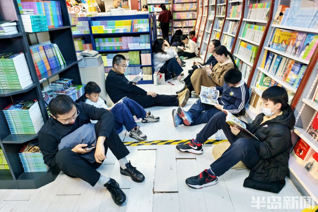 3月14日,青岛书城内暖意融融,少儿阅读区更是人气爆棚。在低矮的书架间、楼梯的台阶上、角落的空地处,随处可见席地而坐的小读者。他们或捧着绘本静静翻阅,或三五成群围坐一起分享故事,稚嫩的脸上写满专注与投入。家长们或站在一旁静静陪伴,或蹲下身与孩子共读,与孩子一起度过周末书香时光。(半岛全媒体记者吴璟)