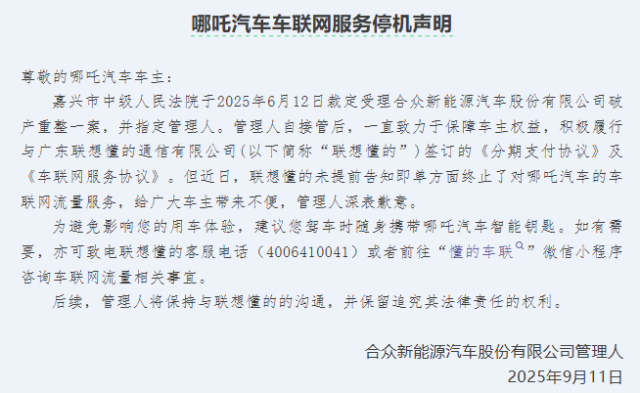 2025年12月,哪吒汽车选定经营管理受托方。公告称是为了依法推进重整工作,维护债务人的资产价值及“造车双资质”。委托经营管理的目标是维持核心生产力、恢复生产制造和销售网络、售后服务重启与运营、授权经营、人员筹备、资产交接等。