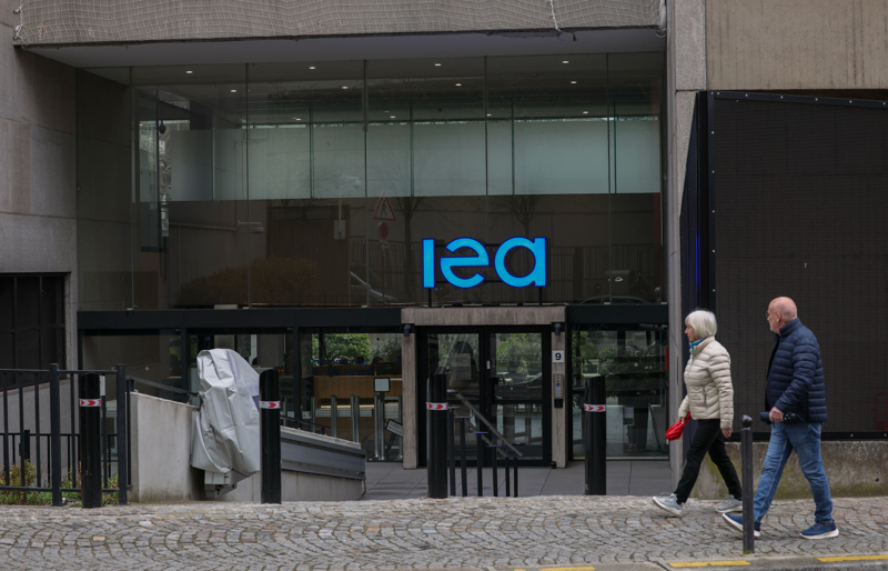 3月13日,在法国巴黎,行人经过国际能源署总部入口。