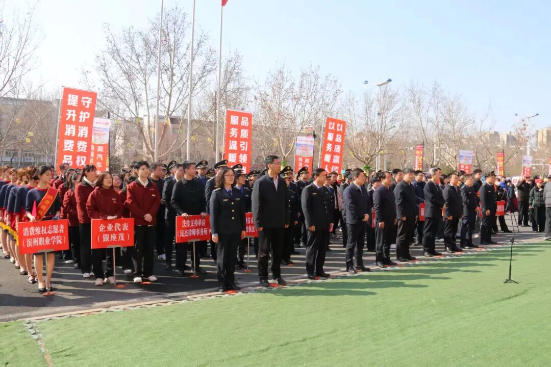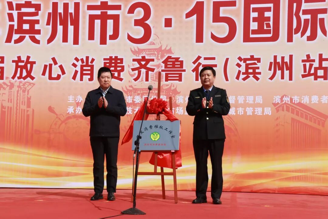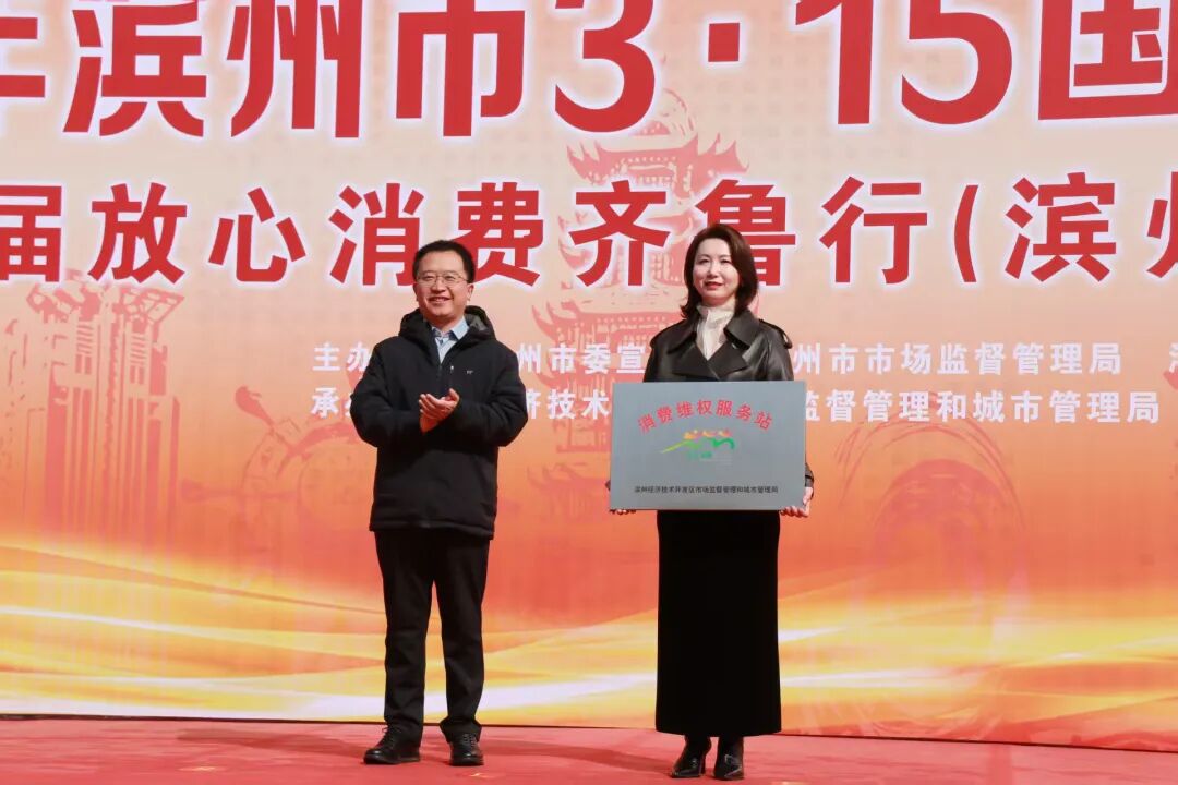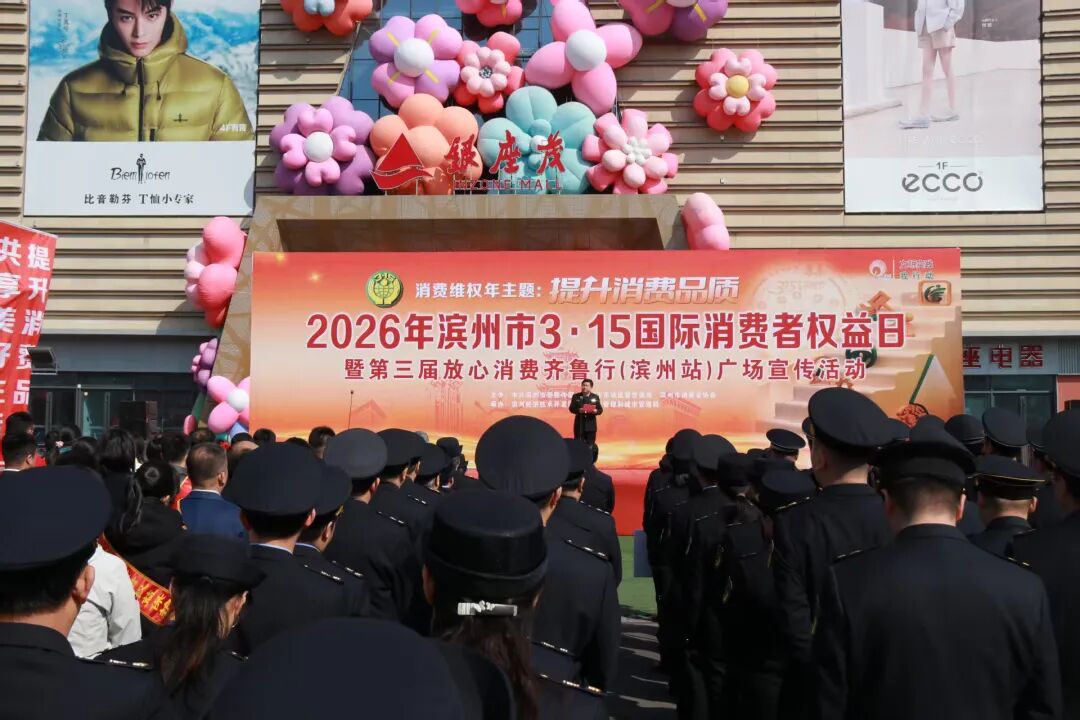 滨州市市场监管局党组书记、局长,市消费者协会会长王兵介绍消费维权工作2026年消费维权年主题为“提升消费品质”。活动现场,“3·15放心购”商家单位代表宣读《承诺书》,为滨州市2025十佳消费维权年度人物颁奖,为“银发消费维权工作室”揭牌,为银座茂消费维权服务站授牌,市场监管局等有关部门现场组织“手机变砝码”计量惠民活动,“你点我检.服务惠民生”活动,并设立了知识产权宣传展台,宣传知识产权惠企政策和服务事项、宣传商品条码相关知识,市消协组织开展了消协律师团现场咨询活动。开发区市场监管和城管局利用展板、实物、条幅、真假商品对比、打假成果展示等方式,向消费者传播普及有关消费知识并接受现场咨询。参加放心消费齐鲁行放心购的商业企业还利用会场舞台开展了消费优惠政策发布活动。活动现场还开展了“滨州好礼广场”宣传推介活动,“好品滨州”品牌企业、高端品质认证企业、地理标志产品和地理标志商标企业促销惠民、消费体验、购物知识宣传等活动。