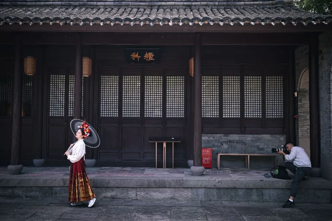 旅拍定制师在浙江省宁波市江北区慈城古县城景区内为游客提供旅拍服务 江汉 摄