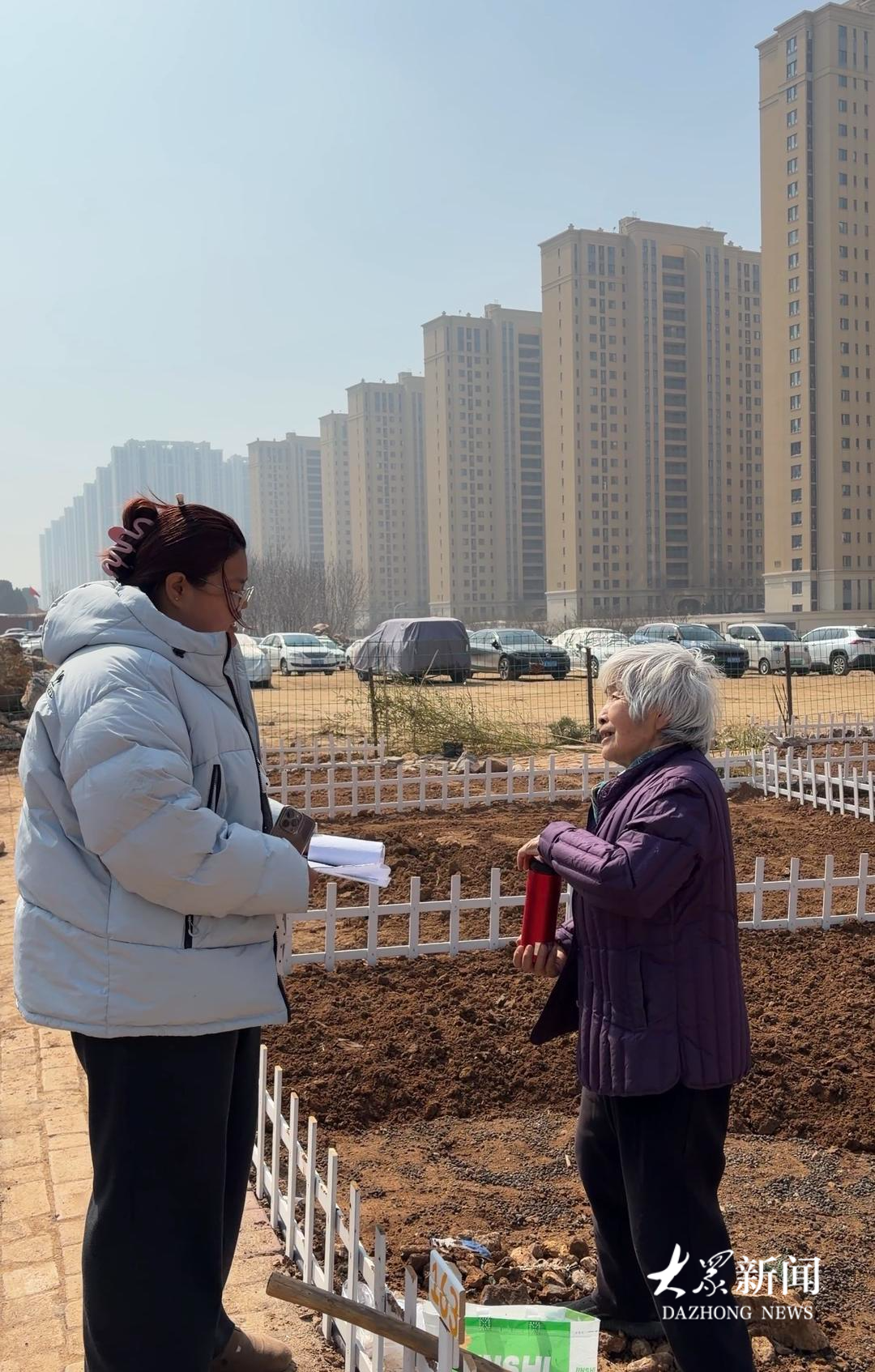 赵昕蕊(左)在和菜园租户聊种植细节。