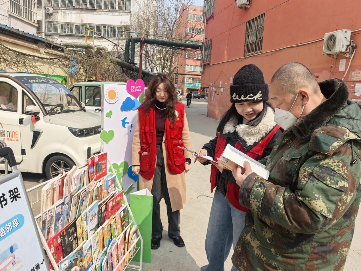 李营街道任旺社区开展“信用+旺旺流动书架”进小区活动