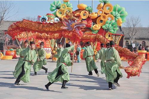 明水古城里的非遗展演。