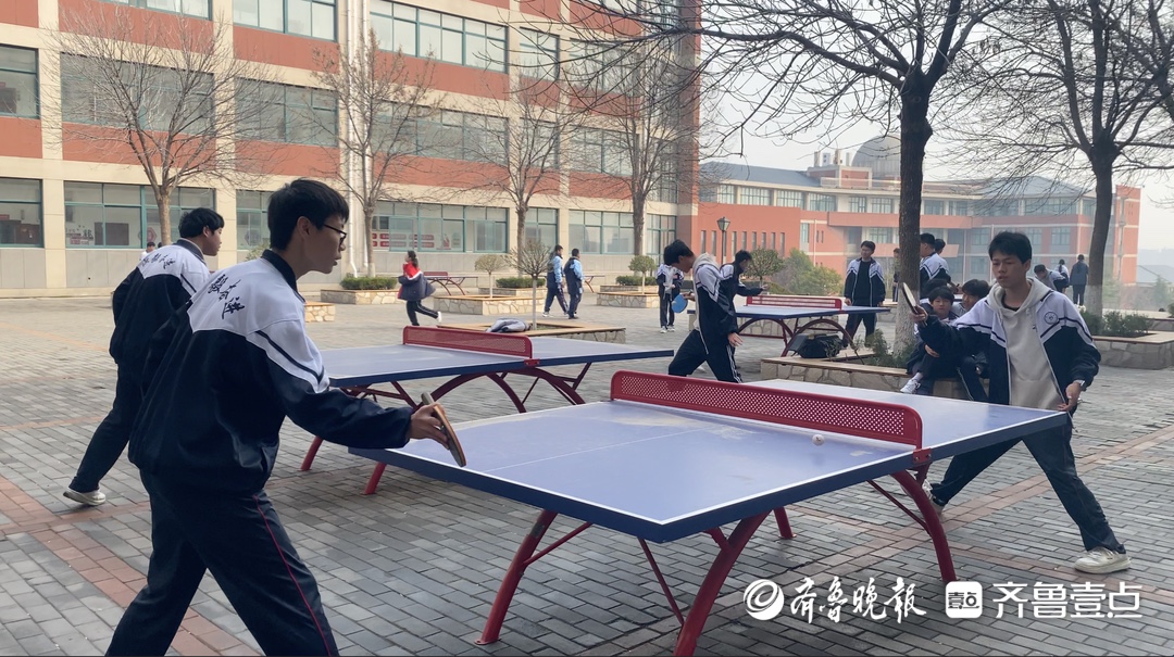 淄博市淄川区般阳中学教学楼下的乒乓球台,很受高中生欢迎。