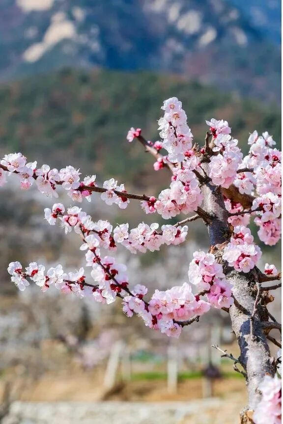 临沂的杏花,藏在沂蒙山水间,粉白花海铺陈山间,与沂蒙山水相映,既有山野的壮阔,也有乡村的温柔。