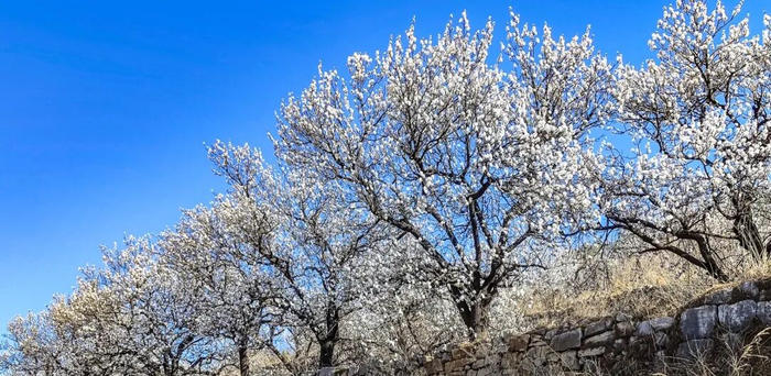 淄博的杏花,多藏在鲁中山区的村落与景区中,褪去了都市的喧嚣,多了几分古朴与苍茫,将山野装点得如梦如幻。