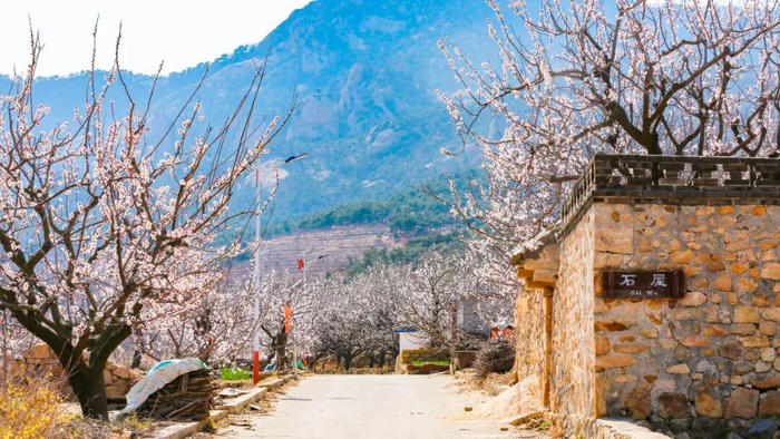 青岛的杏花,藏在山海之间,既有碧海蓝天的映衬,也有古村山野的静谧。
