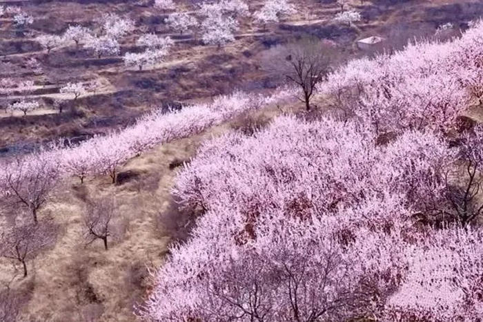 每年春天,满树粉白缀满青山,与错落的农舍相依,春风吹过,花海翻涌,既有山野的壮阔,也有乡村的烟火气,可赏杏、品农家宴,沉浸式感受乡村春日。