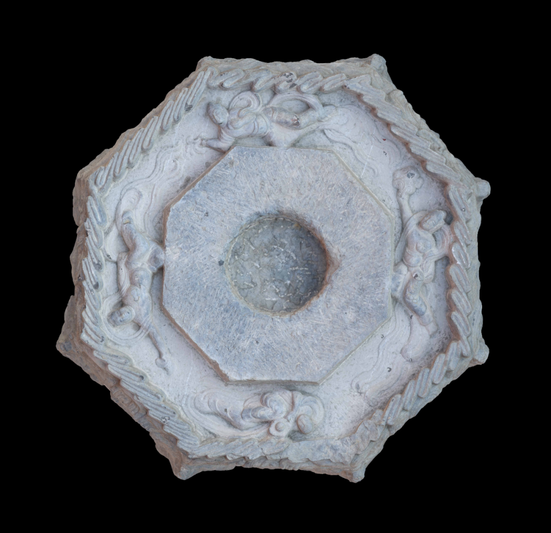 此外,发掘西区还发现了一座较大规模的宋代佛寺建筑基址,由山门、厢房和2组经幢组成。房址内发现4件精美石雕柱础,两经幢基座周边清理出13件精美佛教经幢石雕构件。