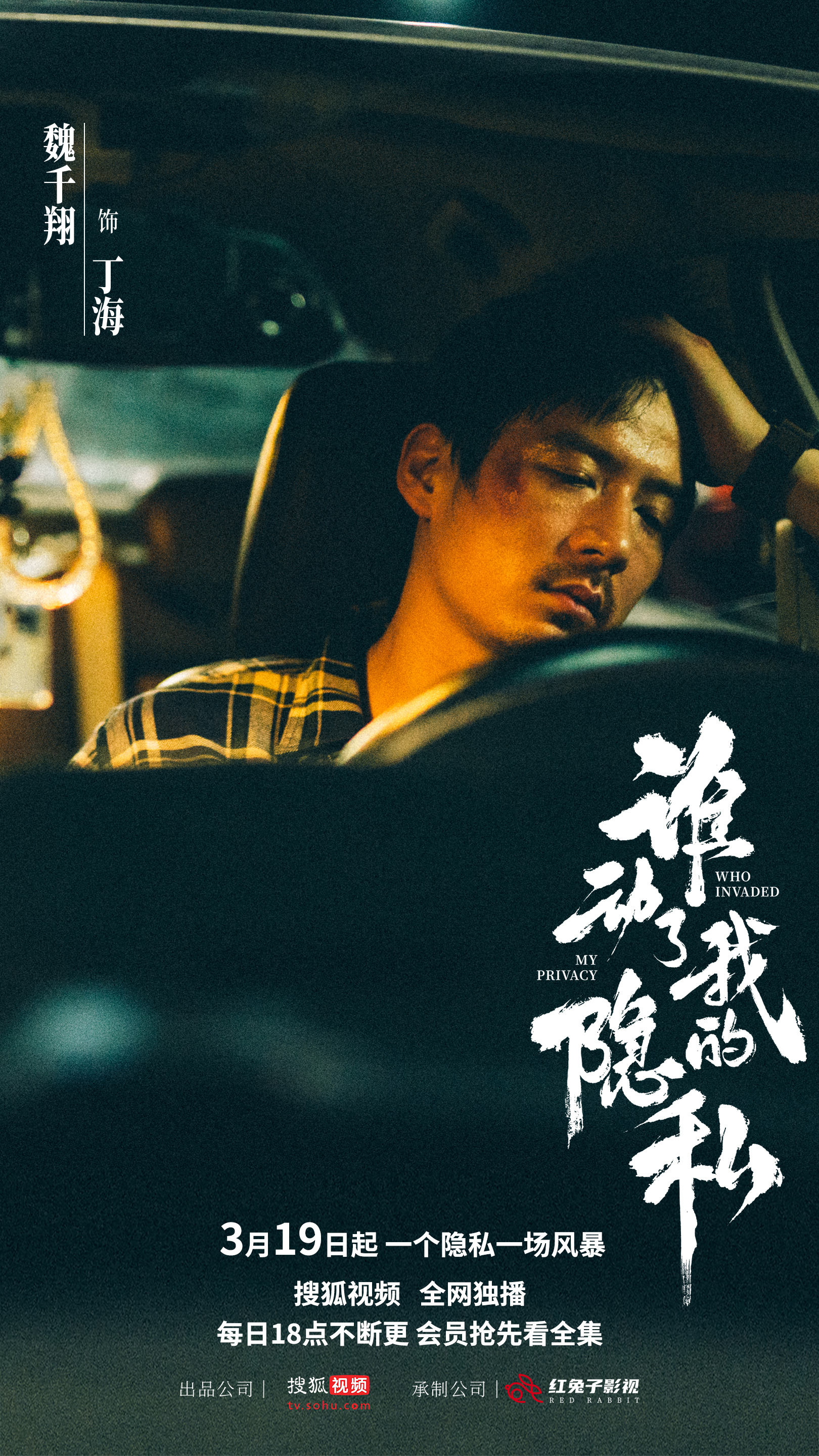 《谁动了我的隐私》今日定档发布了全员入局版预告和12位人物海报,三个单元,围绕“隐私”这个线索展开,人人皆是猎物,人人皆是棋手,锋芒暗藏,看点十足。开篇故事“手机丢了”, 以一个工作受挫,婚姻破裂,女儿重病,生活充满绝望的中年人丁海(魏千翔饰演)展开,在一次开网约车拉客途中,他捡到了一部神秘手机,从此他看似平静的日常生活被彻底击碎,牵扯进了谜一般的怪事当中,而所有线索全都指向那个“手机”。紧接着第二个故事“墙里有鬼”更是悬疑精彩迭进,混迹市井的房屋中介张凯(宋家腾饰演)在整修一处代理房产时,意外在墙壁里面发现巨额现金,面对金钱诱惑, 淋漓尽致展现了人性丑恶和一场风暴!