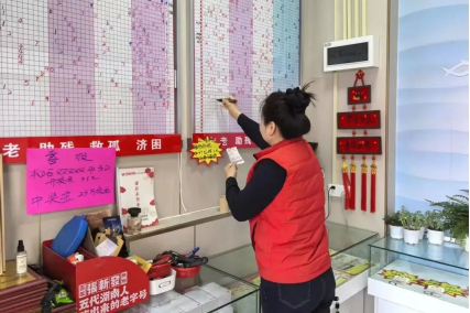 2024年,凭借多年优质服务和规范经营,她的站点被选为“省级示范店”,站内站外全面升级。如今站内公益元素更加浓厚:“公益驿站”配备饮水机、微波炉、血压仪、老花镜等设备,提供药品应急、雨具借用、手机充电等便民服务。墙上不仅张贴着彩友们的“幸运之星”,也悬挂着她和站点获得的各种荣誉,更展示着福彩公益金资助项目的点点滴滴。她希望每一位进站彩友都能看到:每一张彩票的背后,都是一份爱心的传递。