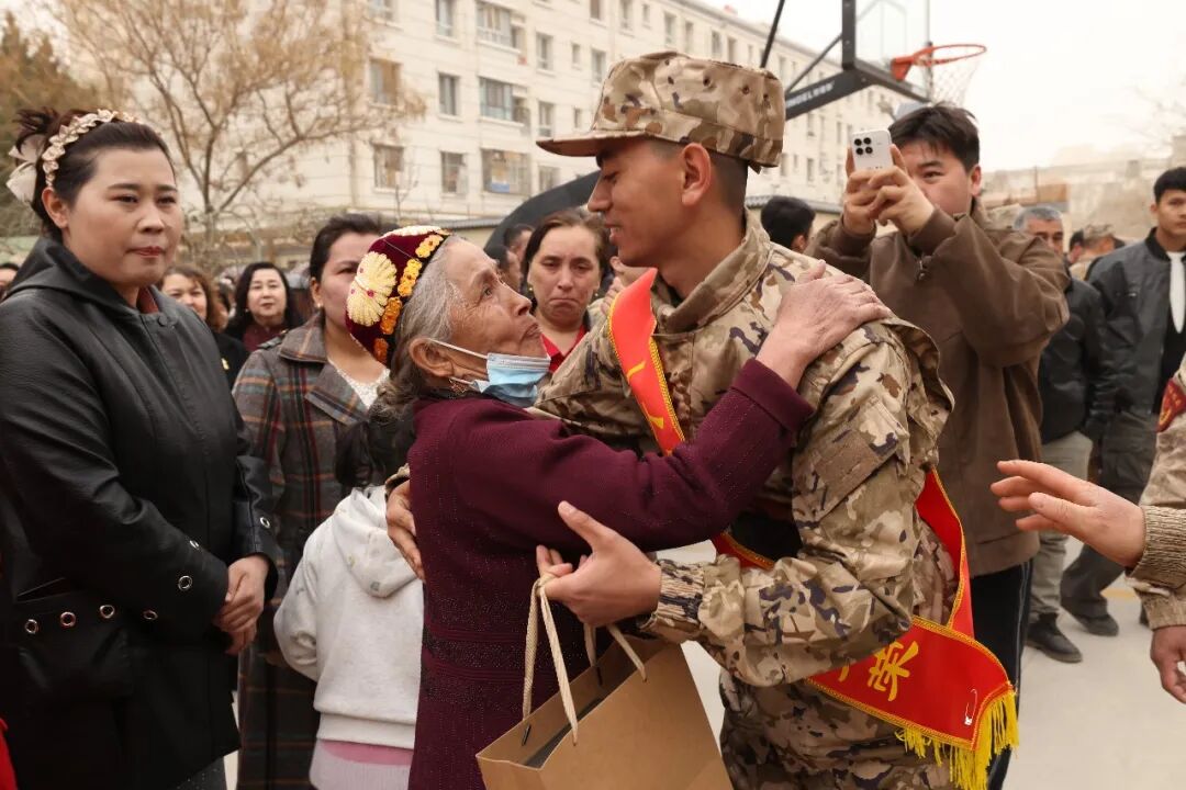 亲朋好友与新兵告别。喀什地区融媒体中心 记者余思民 摄