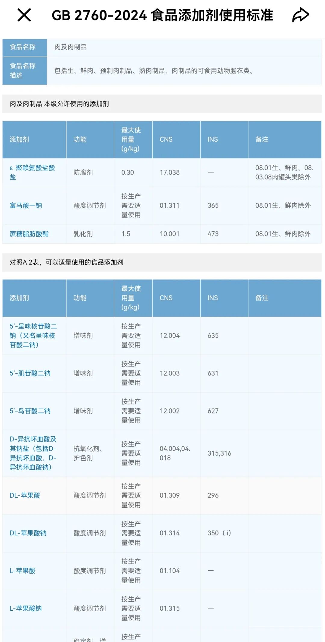 在GB2760-2024《食品安全国家标准 食品添加剂使用标准》中,对各类漂白粉均有严格规定,对于“肉及肉制品”一类,允许使用的添加剂3种,允许适量使用的食品添加剂有多种。