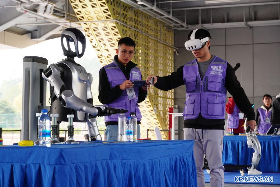 지난해 12월 27일 '2025 로봇 기능 대회'에서 참가 선수가 로봇을 조종하고 있다. (사진/신화통신)