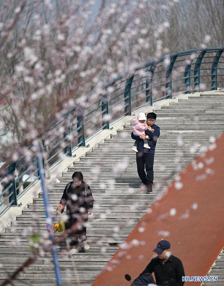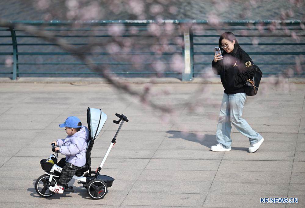 [신화망 톈진 3월16일] 봄날을 맞아 톈진(天津)시 시칭(西青)구 중베이(中北)진 윈허(運河)문화광장은 봄나들이를 나온 사람들로 북적였다.