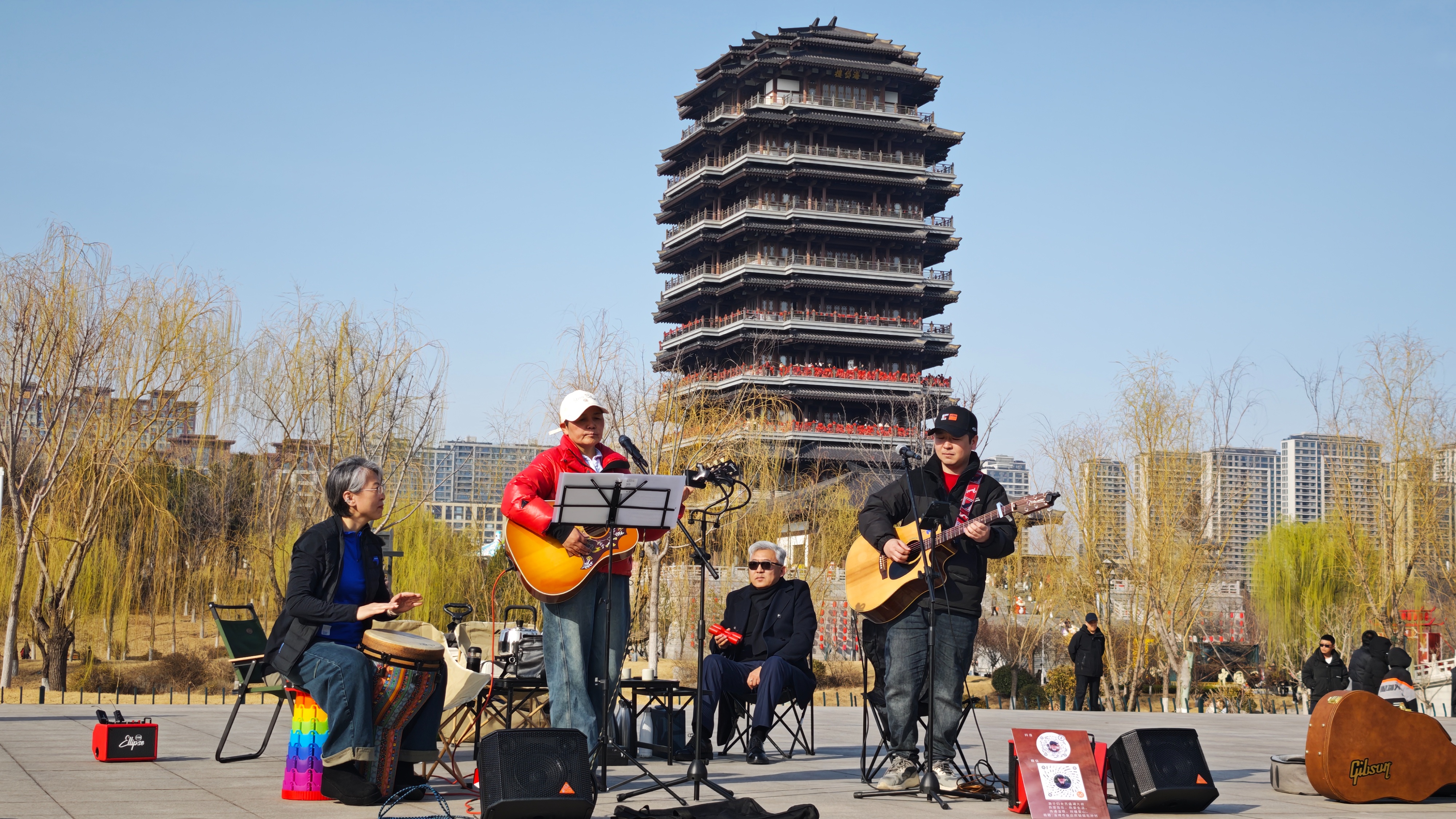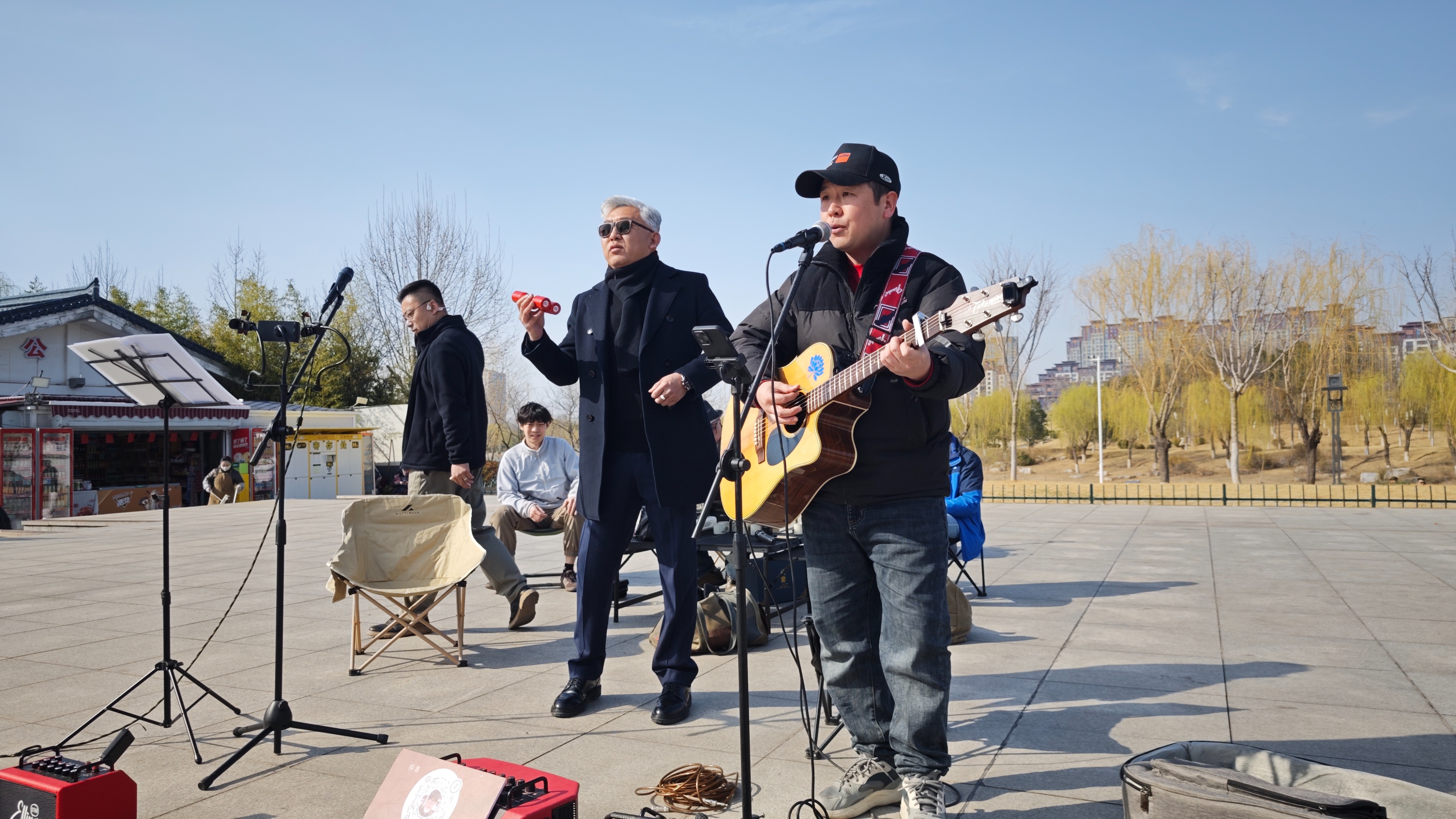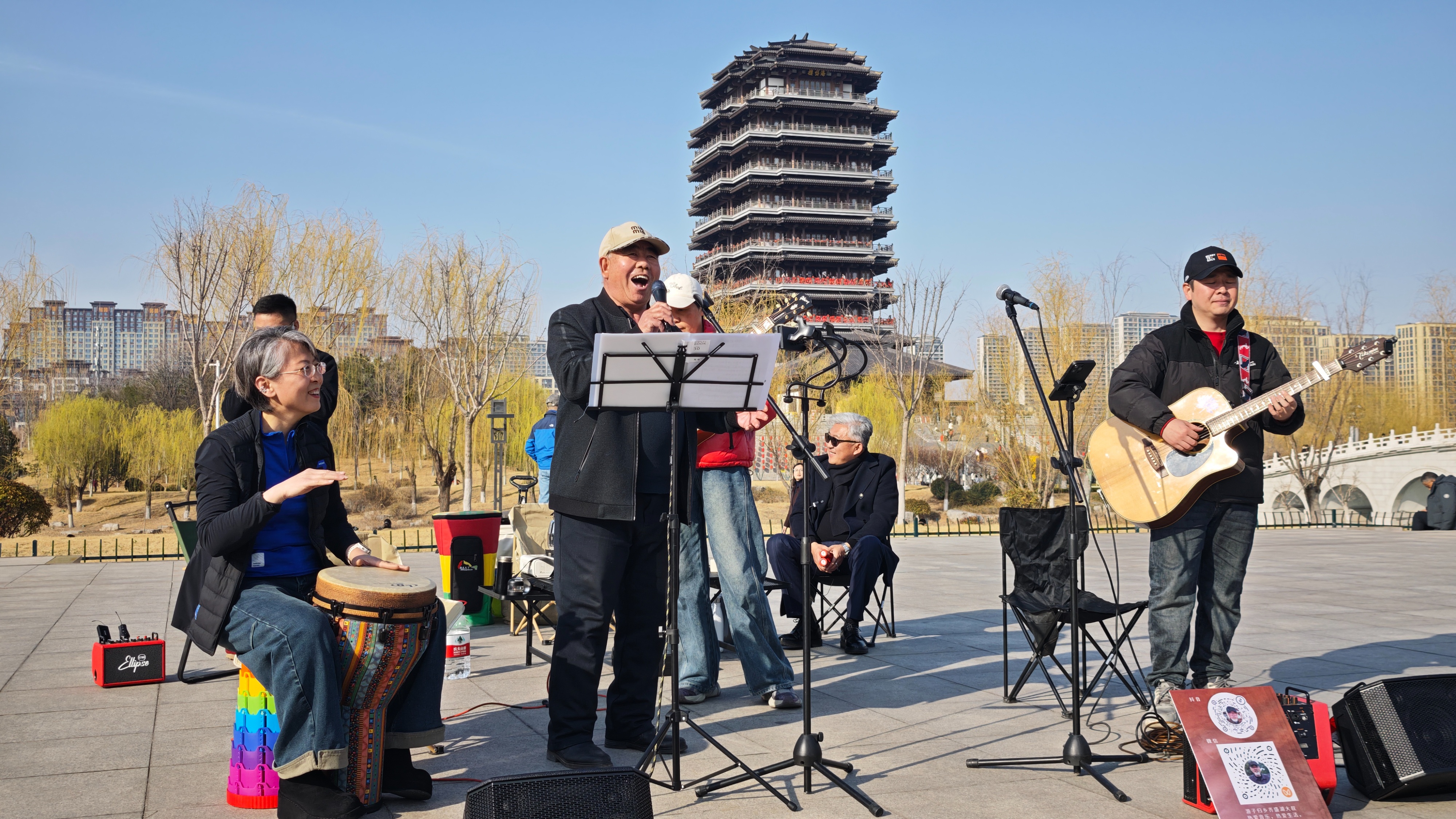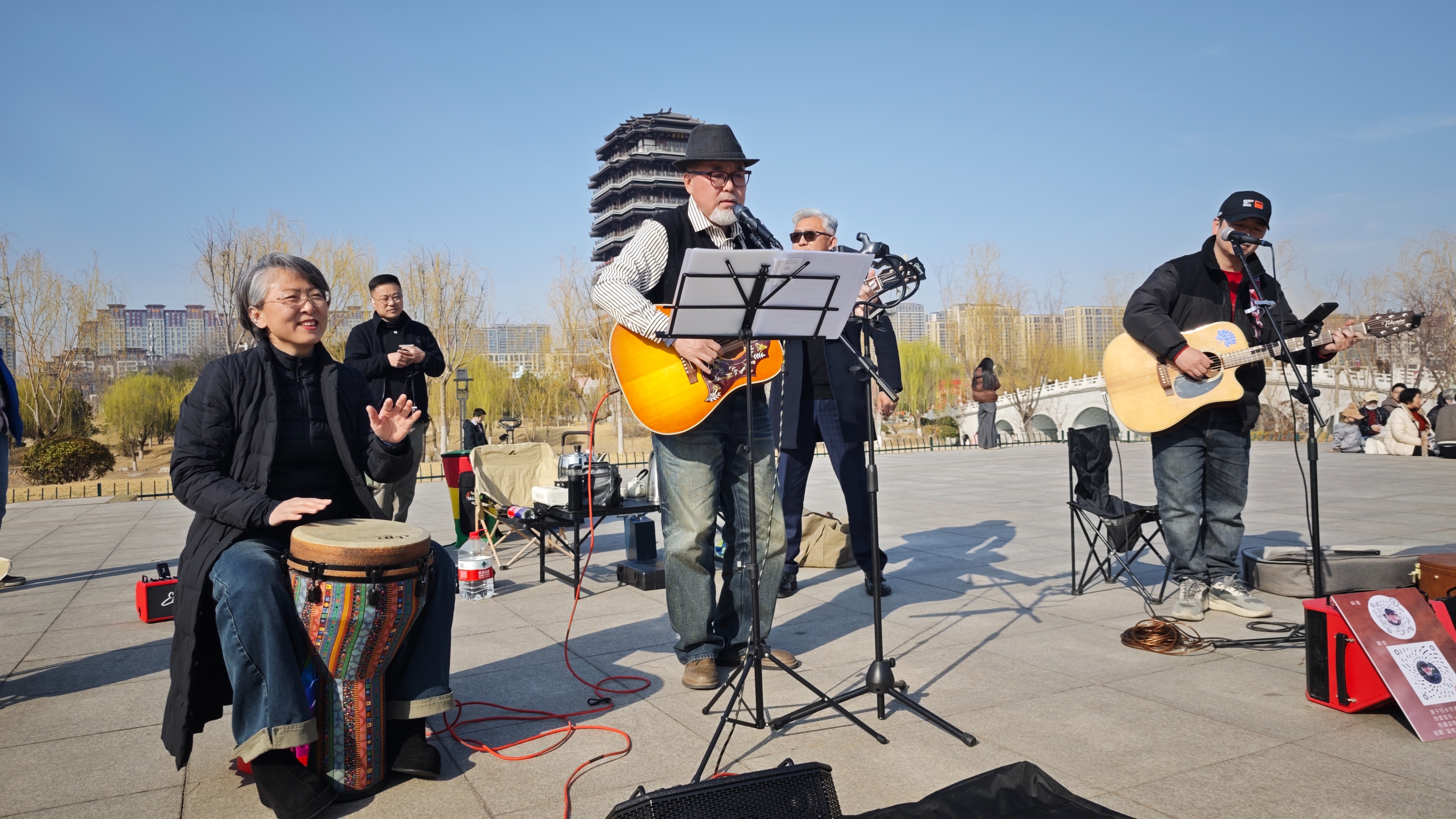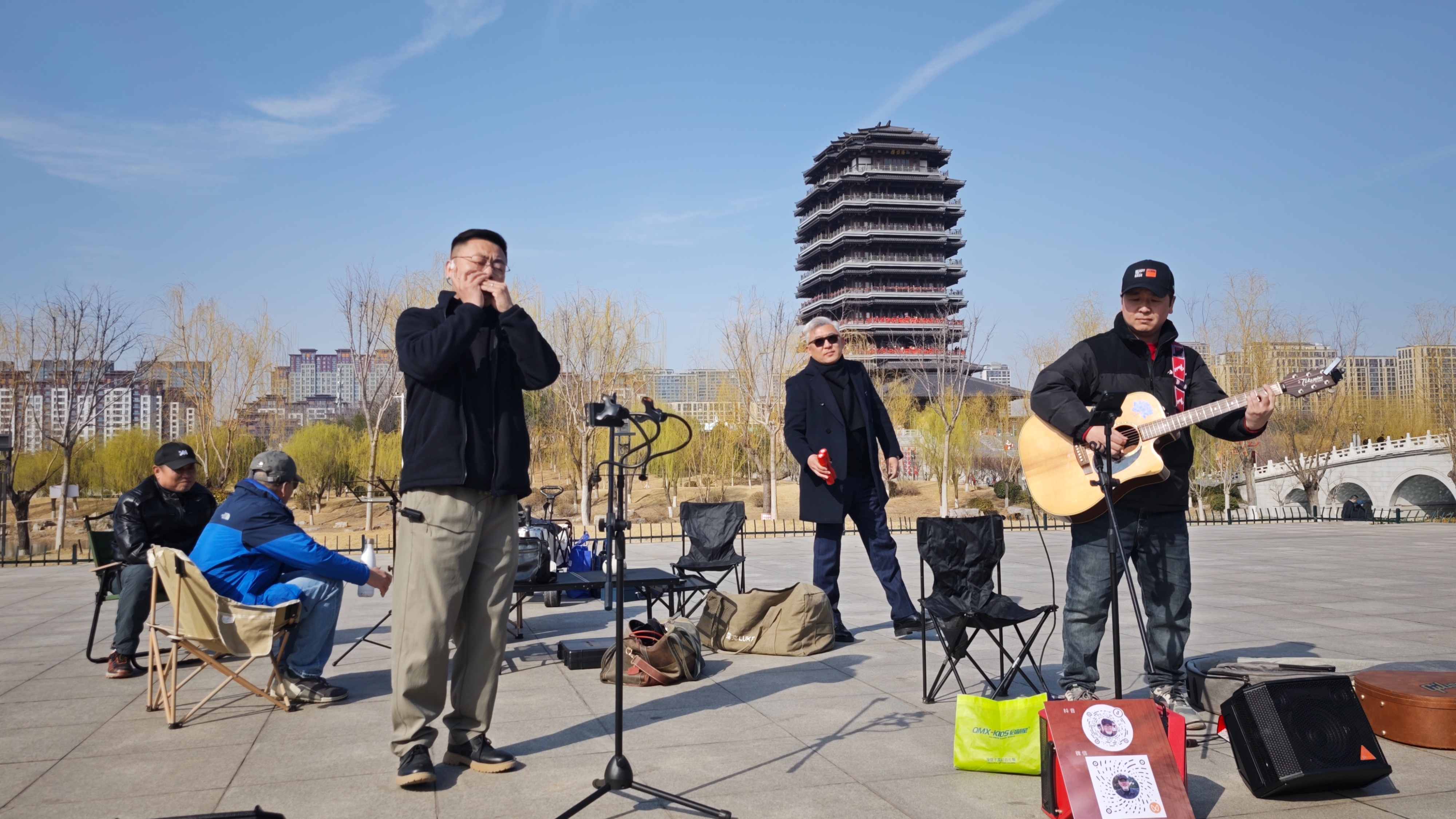 3月15日下午,在齐盛湖畔的微风里,口琴声与吉他弦的震颤撞了个满怀,把白日的喧嚣轻轻推开——齐盛湖大叔天团和大燕儿的素人演唱会,就这么带着草木的清香在湖畔开场了。