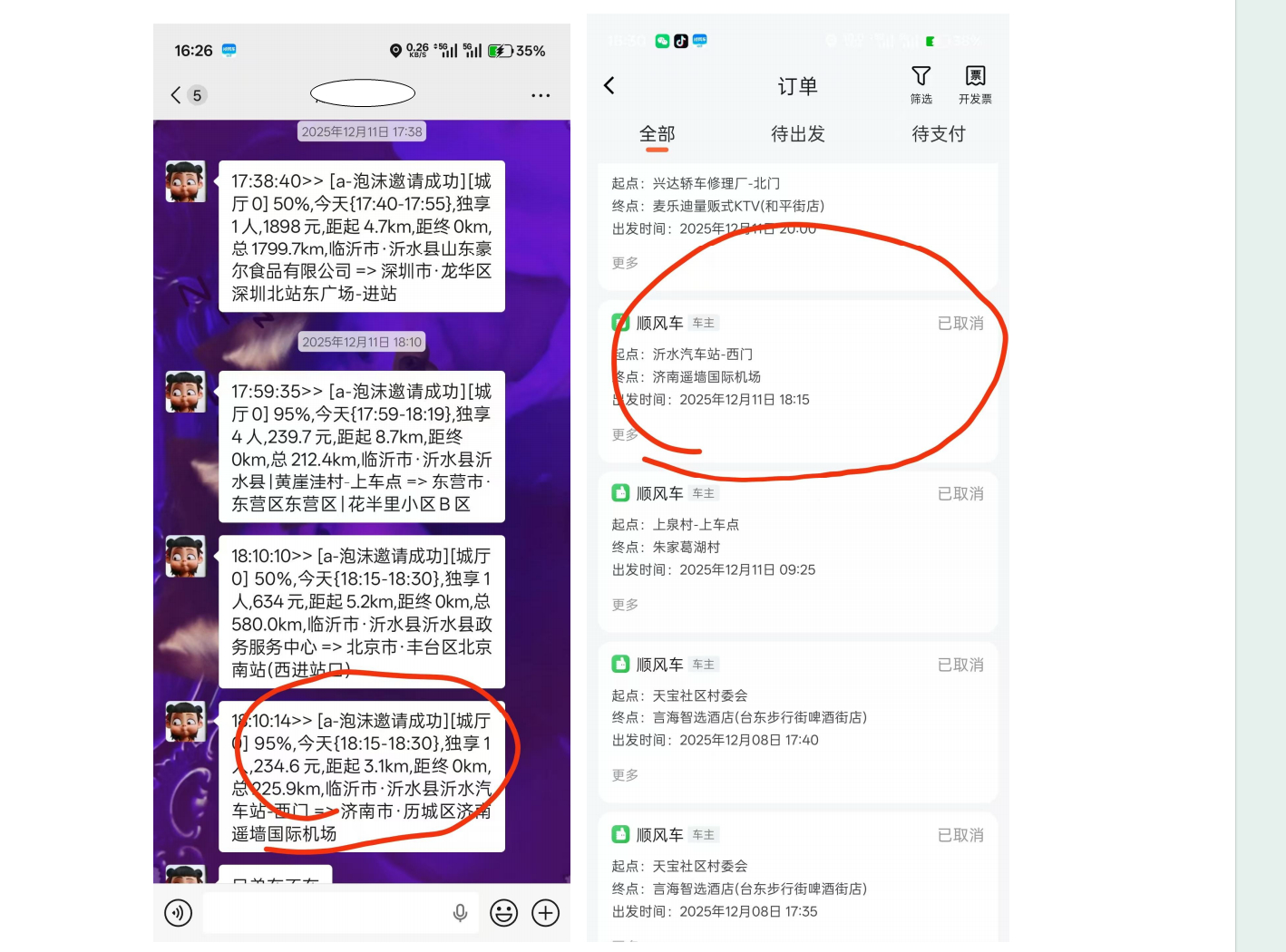 “第一天就接了一单,第二天一单也没接到,还有的单子是半夜或者距离不合适的。”李先生向对方质疑为啥订单是假的,对方说是乘客取消。
