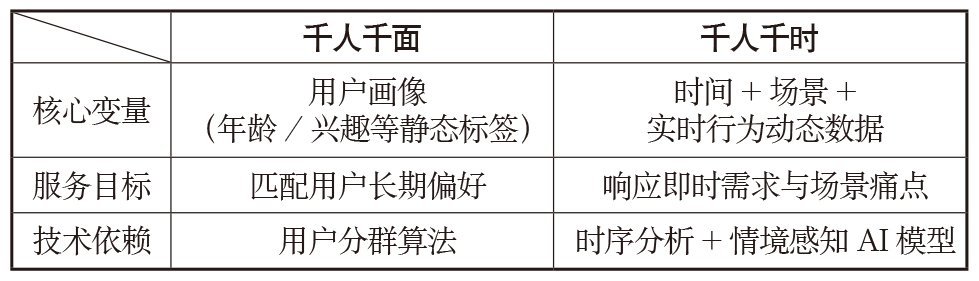 工业革命以来,“标准化”与“大规模生产”一直是效率的代名词。然而,在数字技术和新一代用户崛起的双重驱动下,这一黄金法则正被颠覆。“为我定制”正在取代“一体适用”,大规模的个性化生产(Mass Personalization)正从一个遥远的概念,变为触手可及的现实。而人工智能和柔性制造恰是应对这一挑战的“解题之钥”。显然,AI的崛起正在驱动我们告别“广谱覆盖”的模糊传播,夸张一点说,今天“千人千面”都已然成为过去时,取而代之的是“千人千时”的精准和场景适配的时代。而未来的沟通,是基于深度用户洞察与实时情境感知,为每一个独特个体动态调制意义符码的“智能协奏曲”。