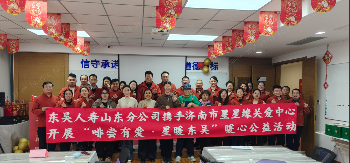 值得关注的是,2026年3月10日,东吴人寿山东分公司职场内举办了一场暖心满满的公益活动——携手济南市星星缘心智障碍者关爱中心,开展“啡尝有爱·星暖东吴”爱心公益行动。活动现场,公司员工与“来自星星的孩子”一同动手制作咖啡,在互动交流中分享制作心得,用陪伴与倾听拉近彼此距离。这场公益活动不仅为特殊群体送去温暖与关怀,更展现了公司践行社会责任、传递爱心正能量的初心,实现了金融消保与公益慈善的深度融合。