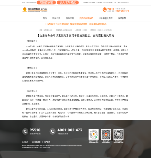 阳光财险山东分公司将始终坚持把消费者权益保护作为公司高质量发展的重要环节之一,深入践行以人民为中心的发展思想,将金融消费者权益和“为民办实事”理念贯穿到日常工作中,切实提升人民群众的获得感、幸福感和安全感,让人们拥有更多的阳光。