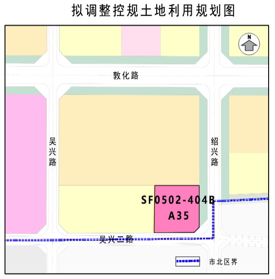近日,市北区中央商务区片区SF0502-404B地块控制性详细规划调整批前公示,地块位于绍兴路以西、规划吴兴二路以北、敦化路以南。