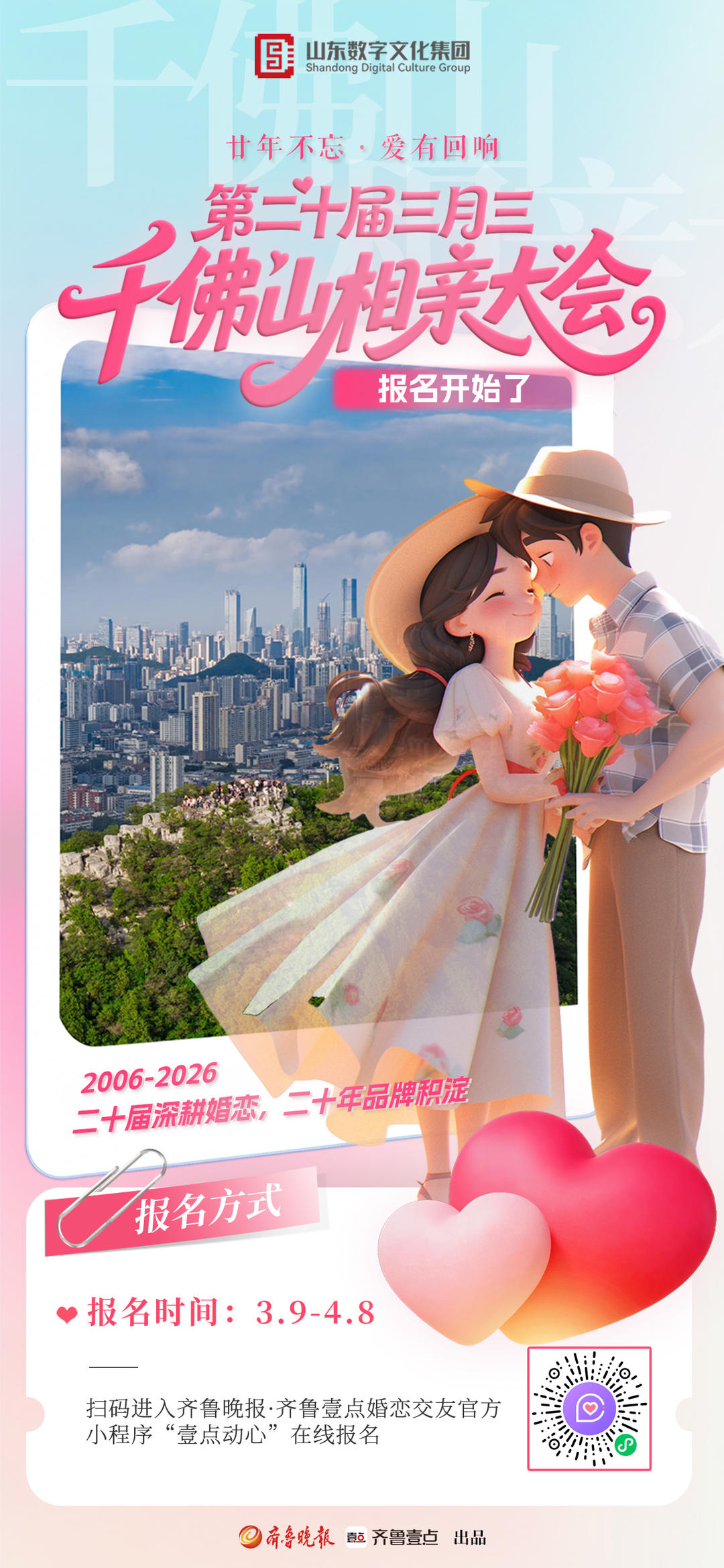 廿年不忘,爱有回响!由齐鲁晚报·齐鲁壹点举办的第20届“壹点动心·三月三千佛山相亲大会”报名火热进行中,为了让您的缘分加速抵达,活动期间我们将继续为您推出“壹点动心·优质嘉宾推荐”互动栏目,每天为您优中选优,助您脱单一臂之力!